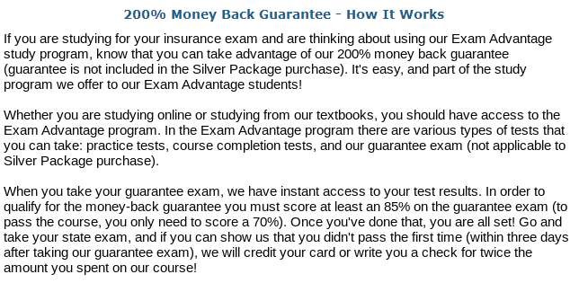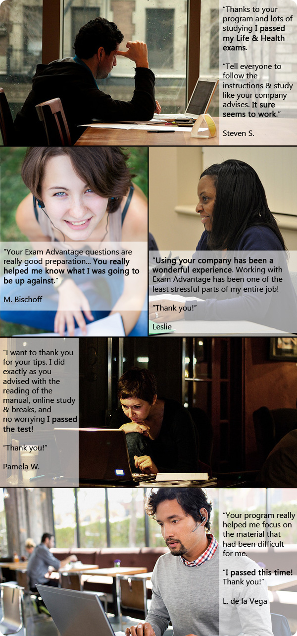 Our insurance pre-licensing courses allow prospective agents to quickly cover the most important material for the license examination. Self study materials allow you to study where and when is most convenient for you. Our multi-format training materials cover all facets of the state Department of Insurance agent insurance prelicensing test, including definitions, basic insurance concepts, state specific insurance laws. Our classroom, online and textbook courses include the Exam Advantage testing program which is designed to imitate the format and questions of the licensing test. Thousands of people have used our easy to understand materials to obtain their insurance license.