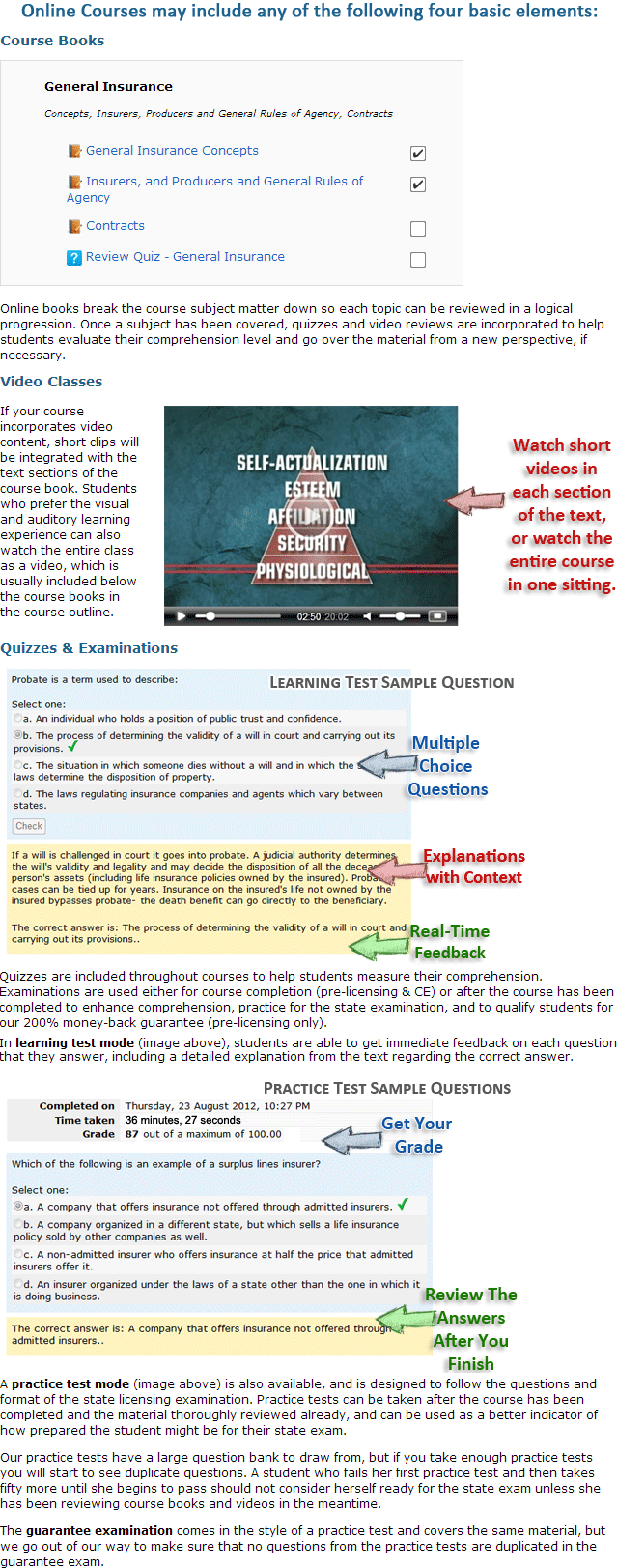 - Online and textbook insurance courses, with options including audios, flashcards, & video review.